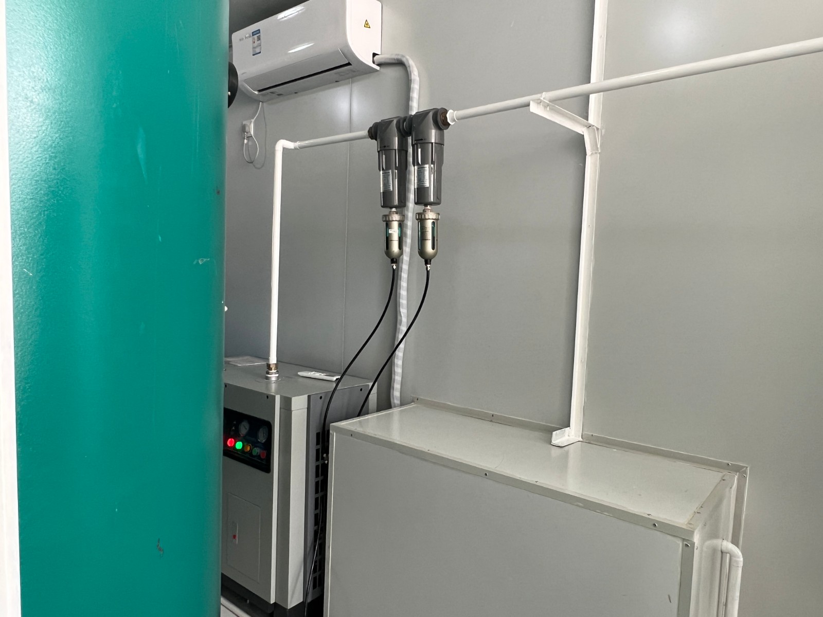 1)方艙內排風口應加裝防爆排氣風扇,排氣風扇安裝尺寸應為400×400mm;空壓機散熱風罩采用白鐵皮制作,風罩與墻體外部連接處應考慮防雨結構;風罩待空壓機就位后,予以現場配制;